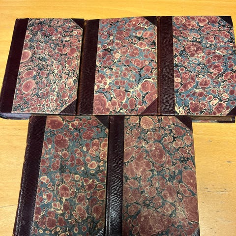 De fleste er ubrukte, i ny tilstand. Noen er innbundet og noen er i myk perm.