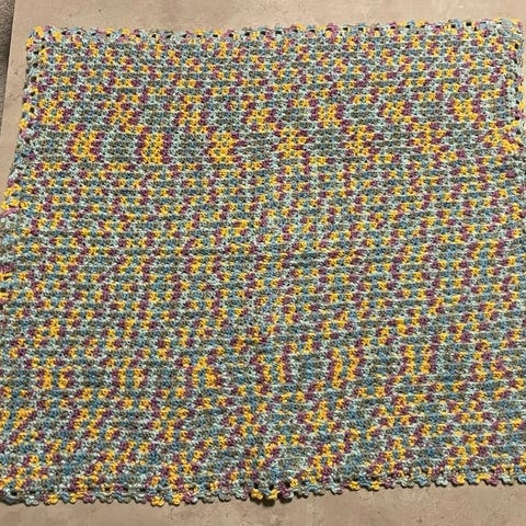 Heklet babyteppe - heklet for hånd. Helt ubrukt, lagd for å selge videre.