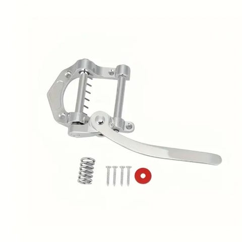 Floyd Rose lisensiert Tremolo . Gitarutstyr som inkluderer tremoloarm, fjærer og festeanordninger. Den er laget av metall med kromfinish og brukes til å justere og kontrollere strengspenningen på elektriske gitarer. Flytende system.