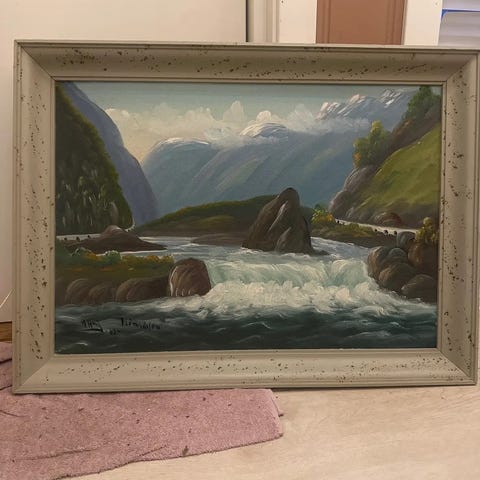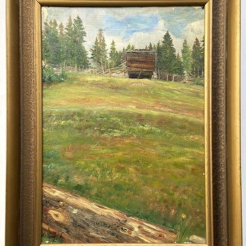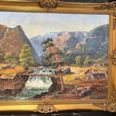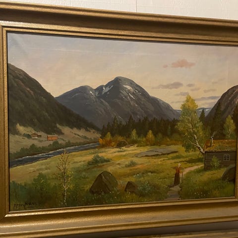 Oljemaleri av Henrik Ness. Landskap med ramme