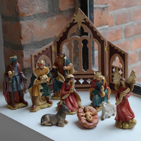 Engel i grønn og hvit kjole med detaljer i gull