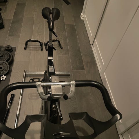 Trimsykkel Abelica winbike sykkelen har små hjul foran som gjør den enklere å flyttet. The flywheel weighs 6 kg. The maximum user weight supported is 150 kg. It includes a computer display and hand pulse sensors. Pris kan diskuteres. Må hantes.🛍