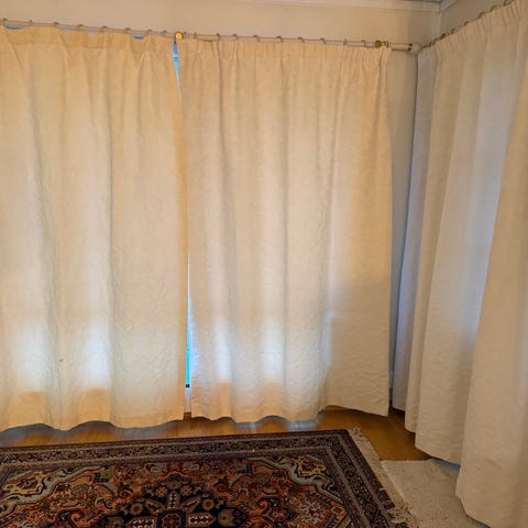 Pent brukte soveroms gardiner sydd hos interiør konsulent.