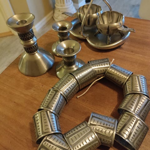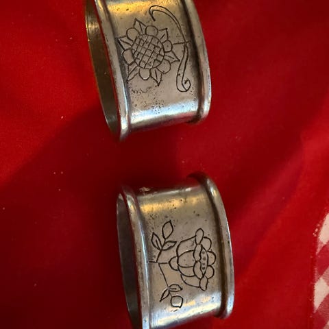 Selges samlet. 8 stk serviettringer. 4 stk dekorarasjonnisser til å dekorer glass, Potter etc