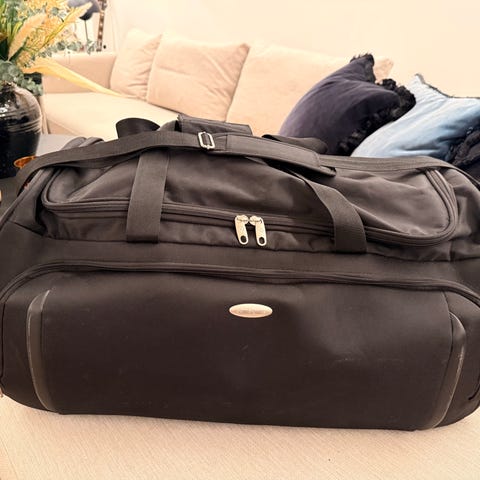Stor svart bag med skulderrem fra Samsonite. Mål ca. 33 x 67 x 33.