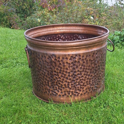 Selger en flott og stor kobber vedkjele/bøtte fra Resy Fabrikker (Reidar Syversen, Stjørdal). Dette er en solid, håndhamret kobberkjele med originale jernhåndtak og flott mønster i overflaten. En klassiker fra norsk håndverkstradisjon!