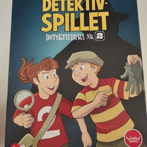 Clue Detective Game brettspill med spillebrett, spillbrikker, kort og instruksjoner. Inneholder elementer for detektivspill og mysterieløsning. Passer for flere spillere.