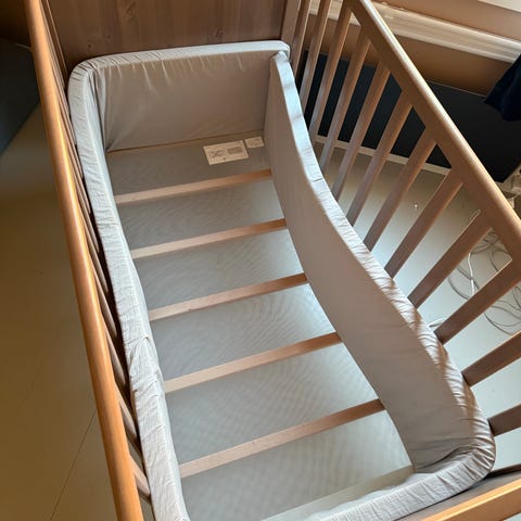 Ett par av snorene mangler, men ikke hadd noe å si for vårt bruk - da den satt godt mellom madrassen og sprinkler i bunn.