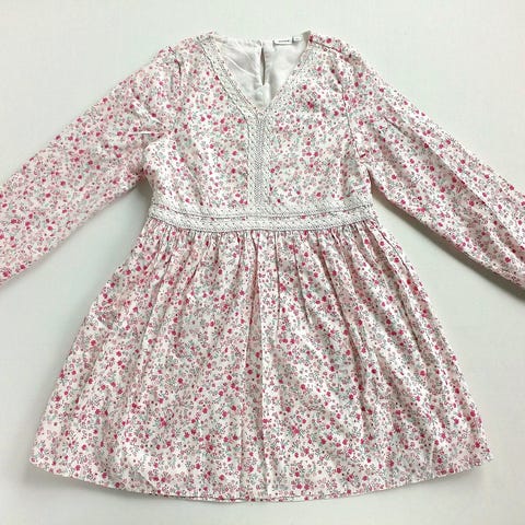 Pen kjole med blomstermønster. Knappelukking i nakken.