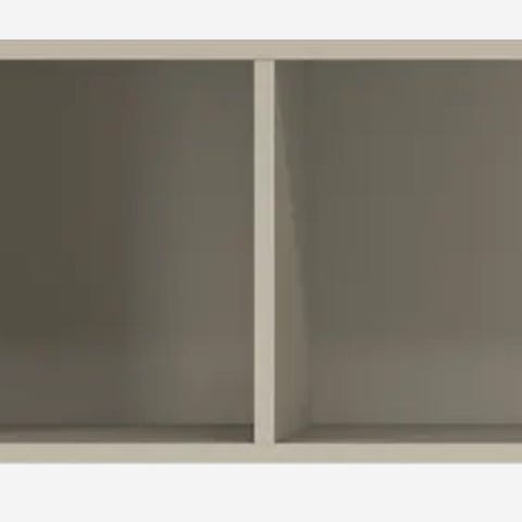 Selger to Occa hyller i valnøtt fra Bo Concept. Minste hylle er 79 cm lang og lengste er