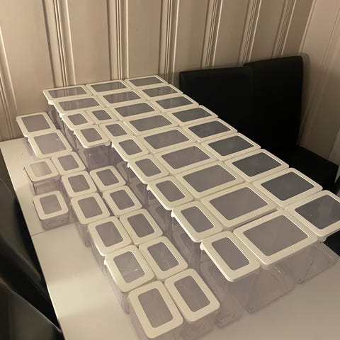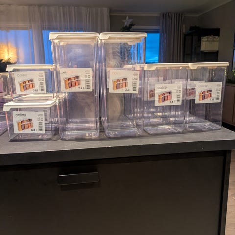 Helt supre oppbevaringsbokser som holder maten fresh lenge- og sørger for oversikt og orden på kjøkkenet. Lufttette lokk.
