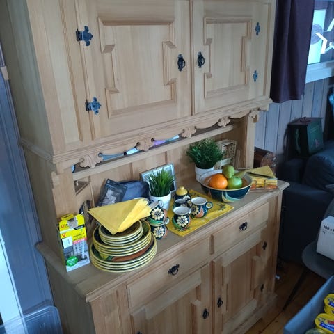 Framskap fra Krogenæs. Skapet har 2 dører under og 2 over. Hylle i midten. Skapet kan lett demonteres i 2 for frakt.
