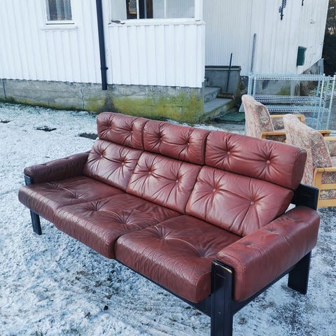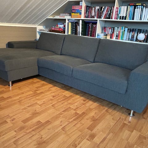 Sofa fra Designers Guild som vi gir bort på grunn av katten vår «jobbet» med den.