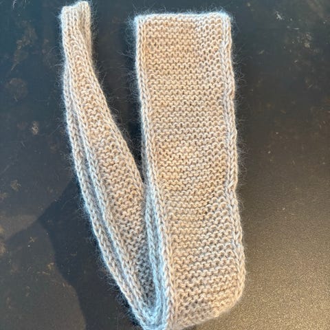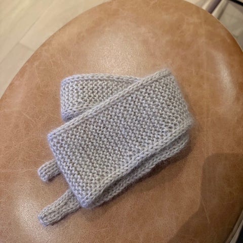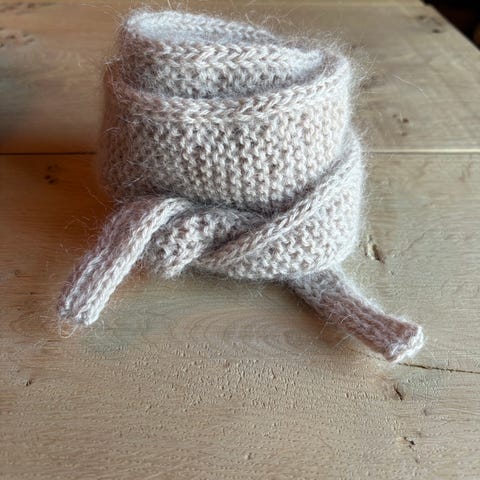 Sophie Scarf strikket i dobbel tråd med garn i baby merinoull + silk mohair i enn mørke blå farge. Lengde ca 130 cm. Oppskrift fra petiteknit.
