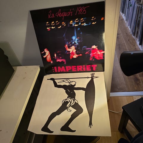 Vinyl VG(-) (flere overfladiske hairlines fra innercover, spiller svært bra)/Cover VG (helt, men generell slitasje)
