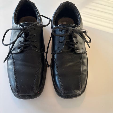 Pensko til gutt i størrelse 31. Skoene er svarte. De har snøring for justering og er designet for barn.