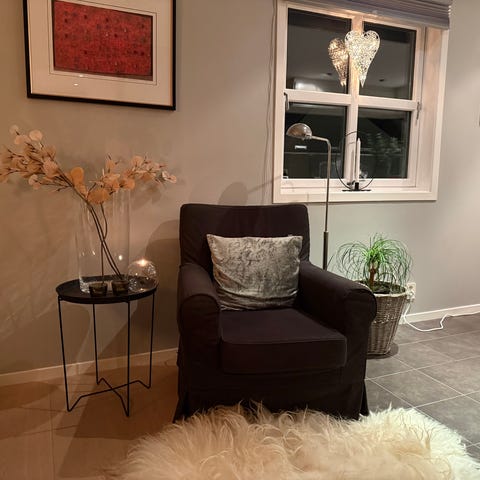 Selger en lenestol i grå fra Ikea. Lite brukt og i kjempefin stand.
