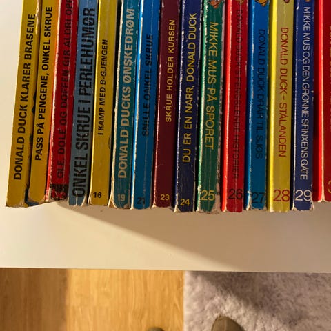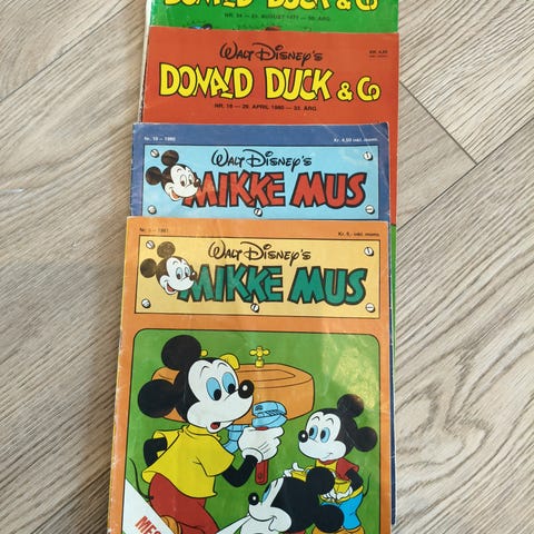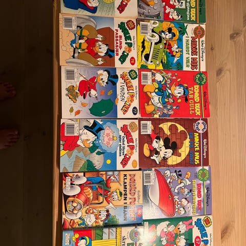 Samling av Disney barnebøker med karakterene Donald Duck og Mikke Mus. Inneholder mange ulike titler med varierende historier og illustrasjoner. Passer for barn og samlere.