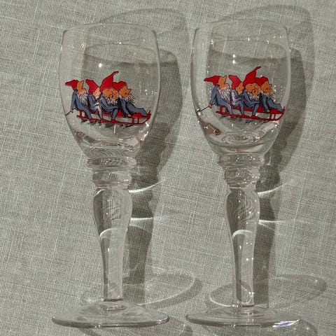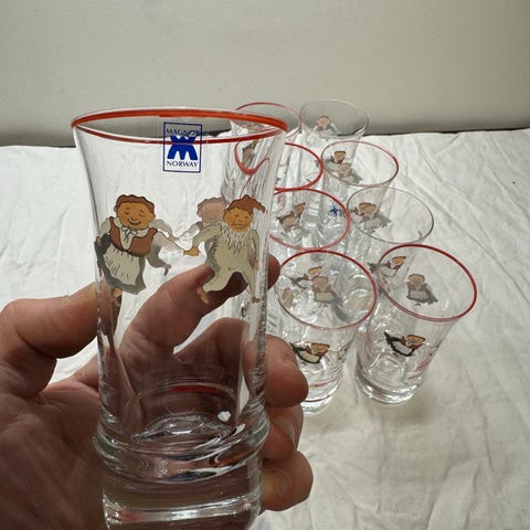 6 stk drammeglass til Porsgrund Nisseservice selges samlet. Pent brukt/lite brukt. Kan sendes.