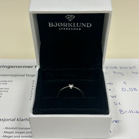 Diamantring i hvitt gull – sertifikat – åpen bud