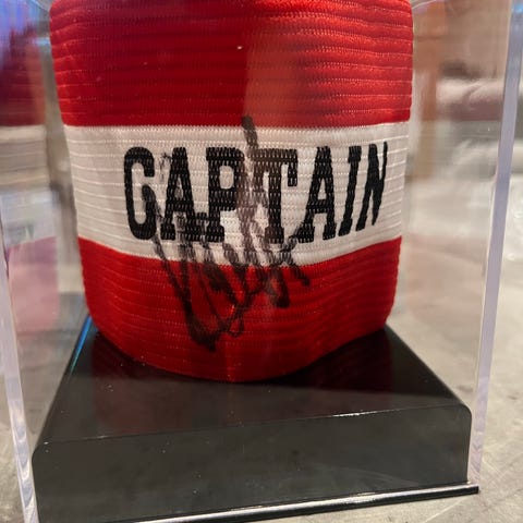 Stan Collymore, Collymore signert, kapteinsbind, captain armband, Premier League, Liverpool, Nottingham Forest, England, signert memorabilia, fotball autograf, COA, AMI Memorabilia, samlerobjekt, fotballsamling, gave til fotballfan