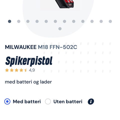 Milwaukee 2000-20 spikerpistol med deler og tilbehør inkludert. Produktet består av flere komponenter som kan brukes til reparasjon eller vedlikehold av spikerpistolen. Denne dykkpistole var på reperasjon da de fant ut at gasstank måtte fylles eller byttes. Kostnaden var så høy at jeg valgte å kjøpe ny. Kan du ordne den selv så er det bare å komme med bud👍👍