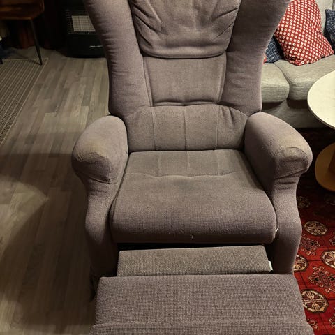 God og pent brukt lenestol gis bort. Ryggen kan lenes bakover.