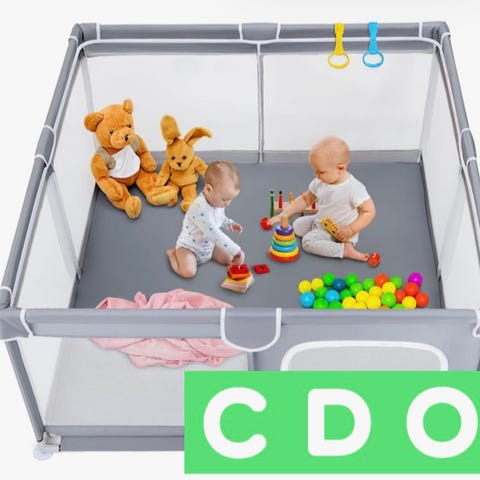 Pent brukt lekegrind som har gitt god nytte helt siden tidlig babyperiode. Kan heve bunnen og senkes igjen når babyen blir større. Teppe medfølger.