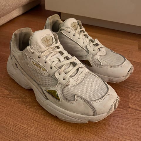 Lite og pent brukte Adidas Sneakers i modellen Falcon. Skoene er i størrelse 37 1/3. Kjøpt i New York og har ikke sett fargen her i Norge. Selges fordi de er hakket for små for meg.