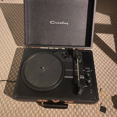 Lite og pent brukt Crosley platespiller med integrerte høytalere selges.