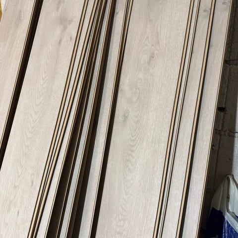 Pergo Torekov gulvplanker chalked nordic oak med mål 2050 x 240 x 9,5 mm. 8 planker + et par avkappp, som til sammen dekker ca. 4 m².