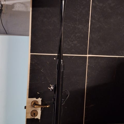 Stativet har vært med på en vask, gikk for en annen løsning da tørketrommelen kom i hus.
