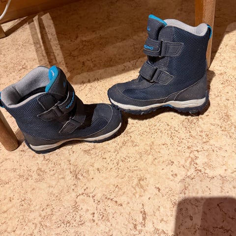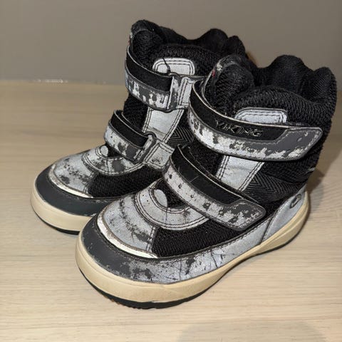 Viking barnesko i størrelse 26, designet for unisex bruk. Skoene har borrelåslukking og en solid såle, egnet for barn. Har så vidt noen bruksmerker på seg. I en mørkegrønn farge.