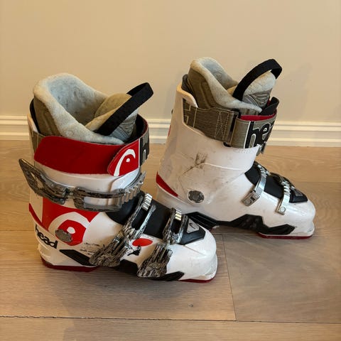 Head Edge JR slalomsko vel med størrelse 220-225 mm. Fargen er svart med røde og hvite detaljer. Støvelen er designet i Italia og har to spenner for god passform.