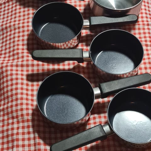Vintage preg med strukturert glass. 1 stor og 6 mindre skåler. Perfekte til tapas, snacks, nøtter eller dessert. Stablebare og svært dekorative på bordet. Mulig italiensk produksjon. Se bilder for mål. Selges samlet for kr 600,-. Kan sendes med rimeligere frakt utenom fiks-ferdig hvis ønskelig. 😊