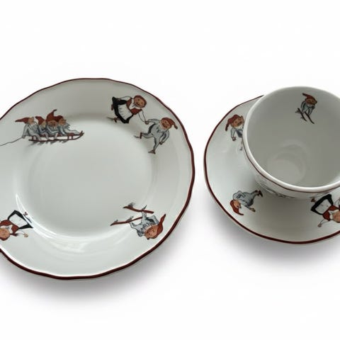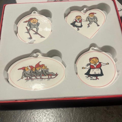 Porsgrund porselen nisseservise julestrømpe, Disney julestrømpe, Disney kakebokser,