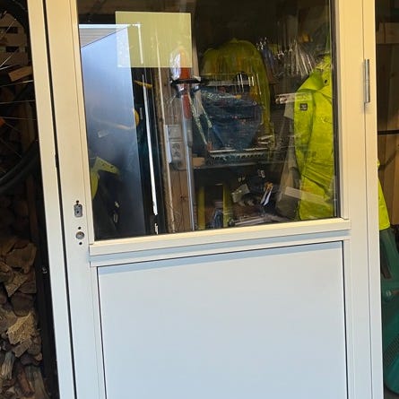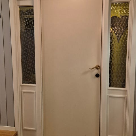 Pent brukt dobbel terrassedør, inkl. plisse up & down fra Fasadeprodukter, selges for kr 3500.
