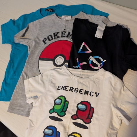 Sønnen min selge videre Super Mario hettegenser og Pokemon hettegenser.