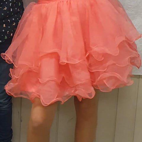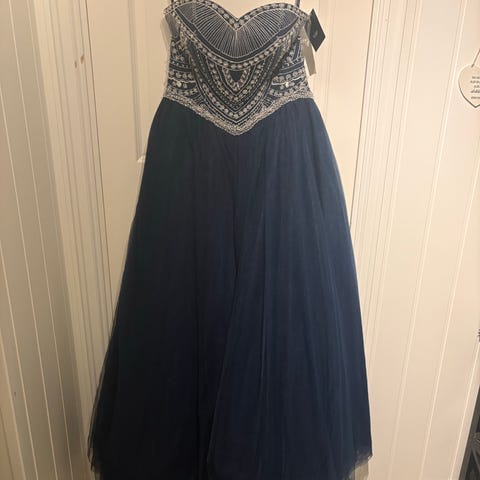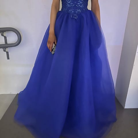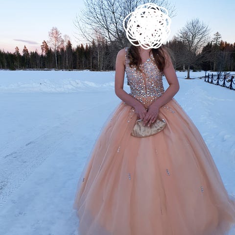 Selges en flott ballkjole som er brukt en gang. Kjolen er komfortabel å ha på og sitter pent. Størrelsen er veldig tilpassende pga korsett snøringen. Så kan passe fra størrelse 38-40. Anbefales å bruke underskjørt på denne kjolen for en bedre look. (kjolen kommer IKKE med underskjørt). Fremstår som nesten ny og passer perfekt til skoleball eller andre formelle anledninger. Selges da den ikke kommer til å bli brukt mer. Kjolen kommer med en case som den er bevart i og ekstra materiale. Ta gjerne kontakt hvis du lurer på noe.