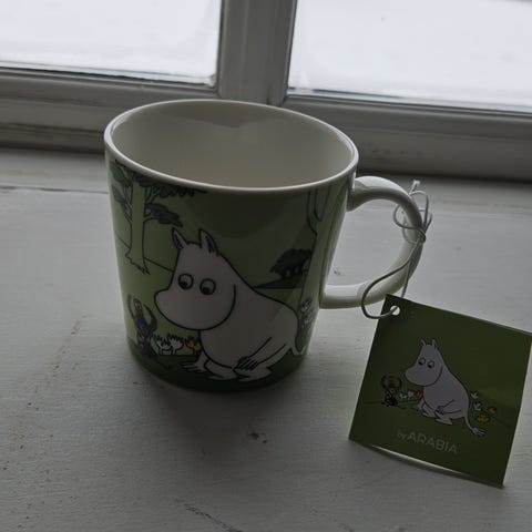 ✨ Kopp laget av keramikk i hvit farge. Koppen har motiv fra Mummi-universet og egner seg for daglig bruk som drikkekopp.