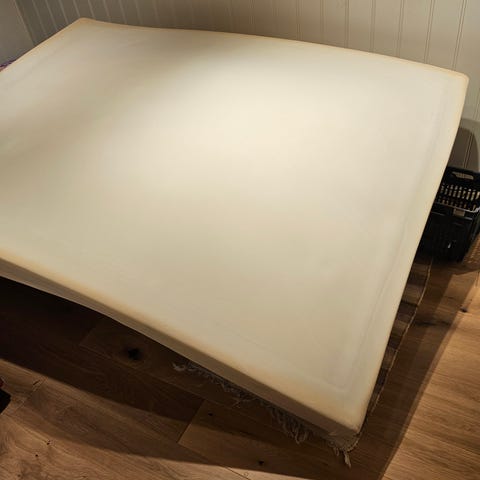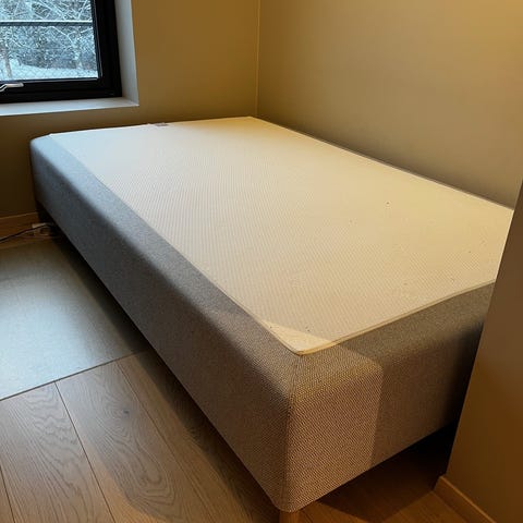 Selve trekket rundt madrasssinnlegger har revnet noen steder ved montering/demontering/ flytting ved oppbevaring på den ene kortsiden (se bilder). Dette påvirker selvfølgelig ikke kvaliteten på madrassen, men er kun en skjønnhetsfeil som ikke vises når den ligger inni overtrekk.