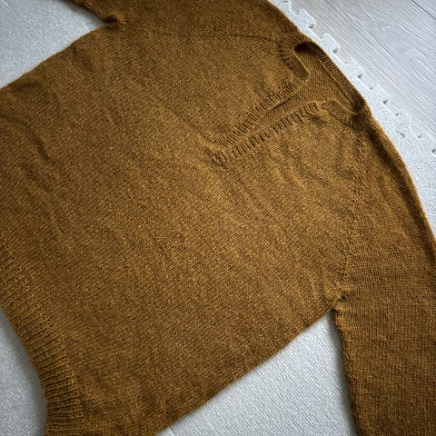 Helt ny og ubrukt håndstrikket offwhite oversized genser. Strikket i Drops Soft Tweed 50% ull, 25% alpaca og 25% viskose. Følgetråd Drops Kid-Silk 75% mohair og 25% Silk.