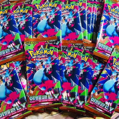 Uåpnet booster fra det nyeste settet Mega Inferno da jeg gir opp jakten på Charizard kortene.