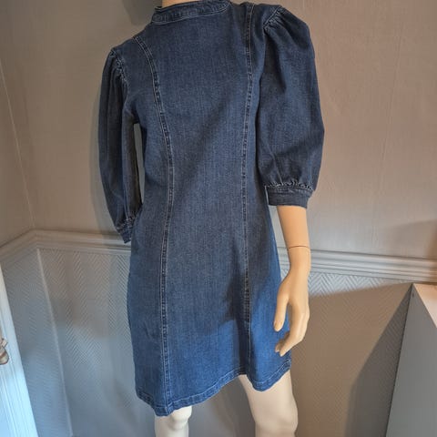 Vero Moda hverdagskjole i denim, størrelse M, farge blå. Kjolen har knapper foran og belte i midjen, laget av denim materiale.
