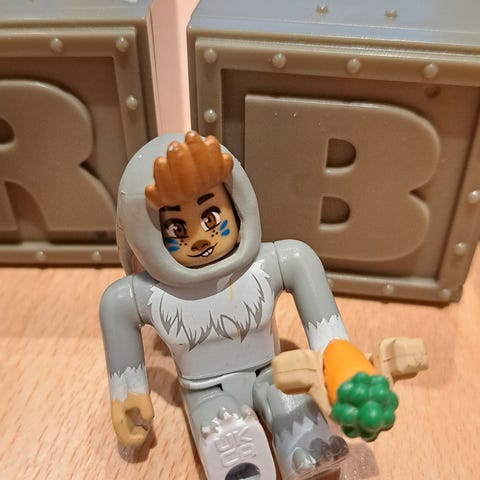 Sønnen selger Roblox figurene sine med tilbehør. Det du ser på bildene er det som følger med. Ikke alt er komplett.