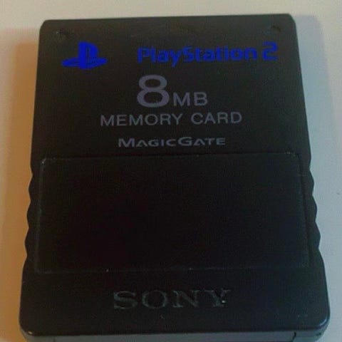 Sony PlayStation 2 minnekort med 8 MB lagringskapasitet. Brukes til å lagre spilldata på PlayStation 2-konsollen.