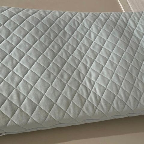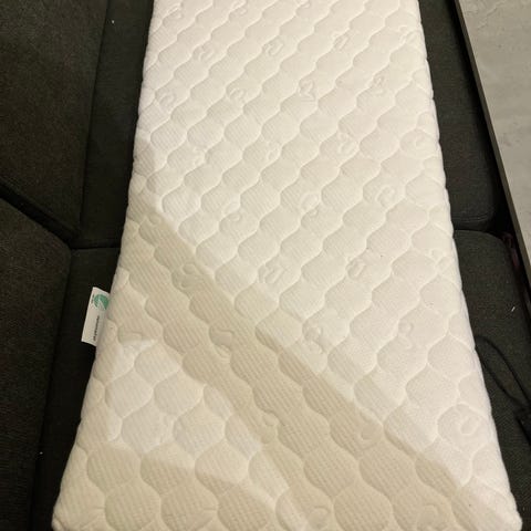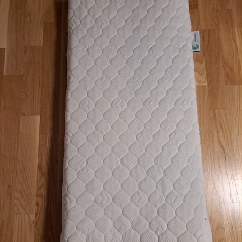 Nesten ubrukt helsemadrass til bayseng. 3 laken kan medfølge.