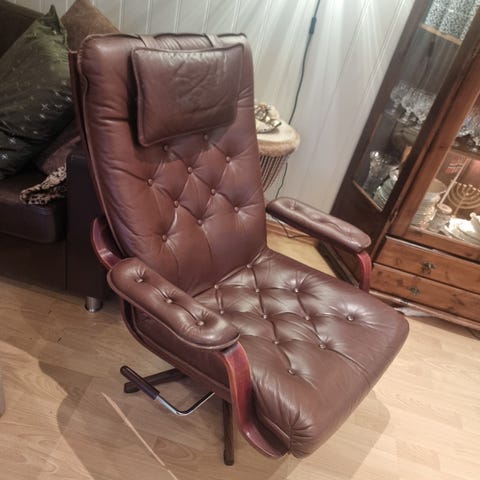 Ene armlenet ha sprukket som vist på bilde og et lite merke nede på skinnet. Ellers i god stad