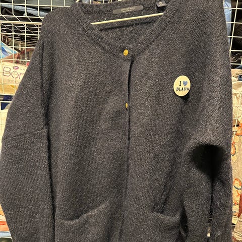 Scotch & Soda Cardigan i blå farge, størrelse M, laget av angoraull. Plagget er designet for kvinner og har knappelukking foran. Materialet gir varme og komfort, egnet for kaldere vær.ny kr 2400