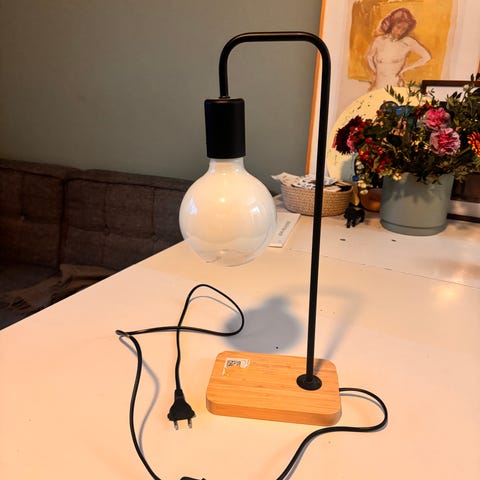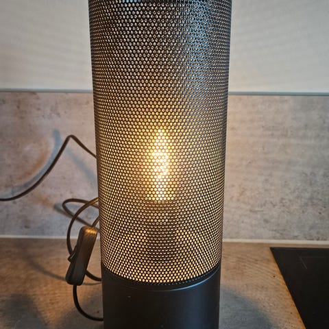 Bordlampe i metall med hvit lampeskjerm